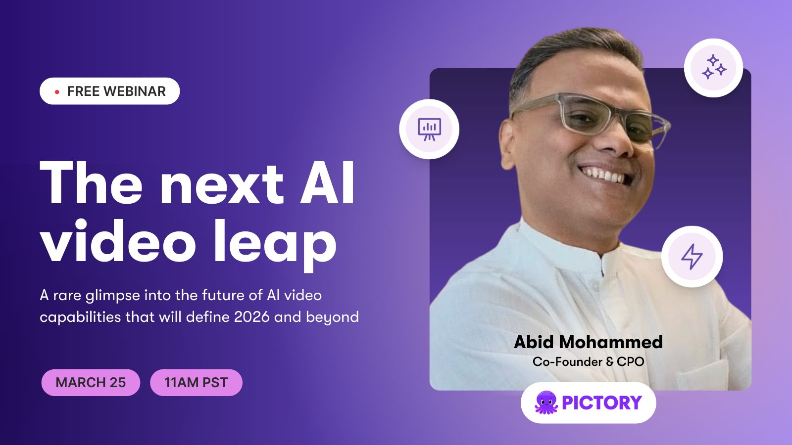 *If you're a current Pictory subscriber, you'll get 100 free AI Credits to use while your current subscription is active. And if you're not a subscriber, we're currently offering an upgrade to the Annual Professional Plan where you'll receive double your AI credits. That's 6,000 bonus credits, a $240 value!. ✨ Save your seat (space will be limited!) and we look forward to seeing you then. P.S Can't join us live? Save your seat and get access to the replay. 🎞️
